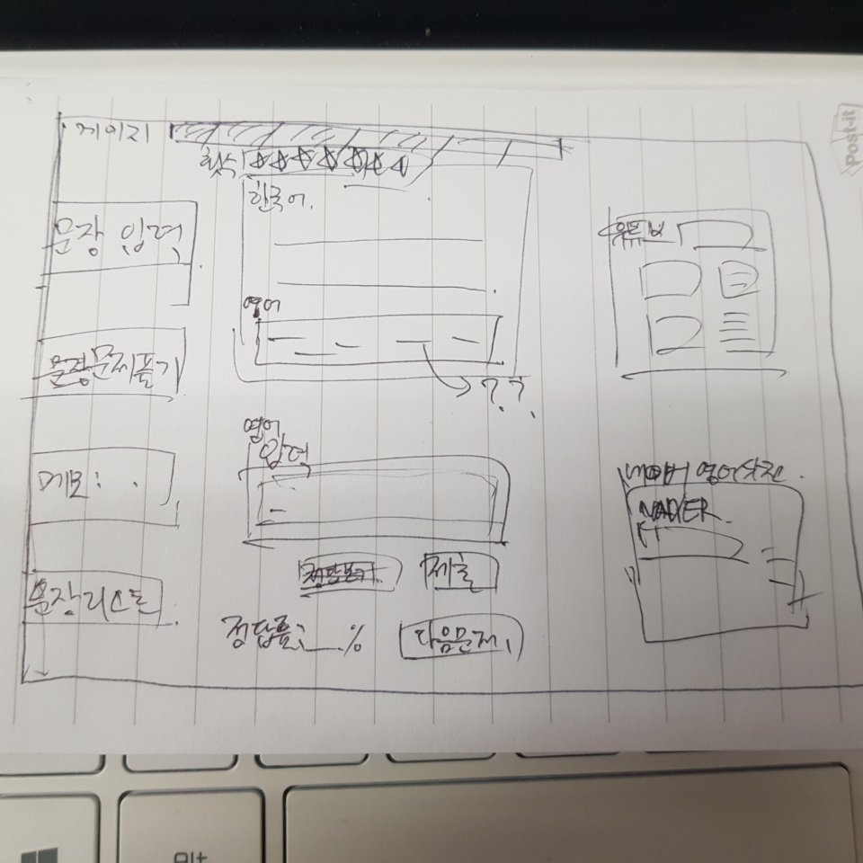 4. 개발해야하는 기능: 정답일치, 랜덤추출, 저장된 전체 문장 보기/추가/삭제/횟수 정보 표기/검색가능하게하기, 유튜브 자동 검색/ 네이버 영어사전 공간, 메모장 기능, 날짜/시간 인식, 달력에서 날짜별 성취여부 표시해주기, 단어별로 쪼개기, input창도 쪼개기?, 제출 클릭시 횟수추가, 게이지추가, 다음문제 클릭시 새로운 랜덤추출,