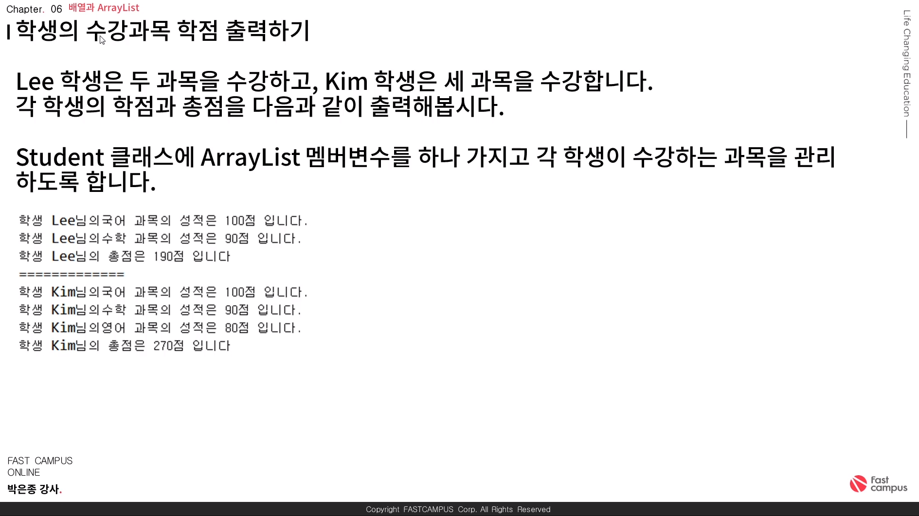 ArrayList list = new ArrayList();//타입 미설정 Object로 선언된다. ArrayList<Student> members = new ArrayList<Student>();//타입설정 Student객체만 사용가능 ArrayList<Integer> num = new ArrayList<Integer>();//타입설정 int타입만 사용가능 ArrayList<Integer> num2 = new ArrayList<>();//new에서 타입 파라미터 생략가능 ArrayList<Integer> num3 = new ArrayList<Integer>(10);//초기 용량(capacity)지정 ArrayList<Integer> list2 = new ArrayList<Integer>(Arrays.asList(1,2,3));//생성시 값추가