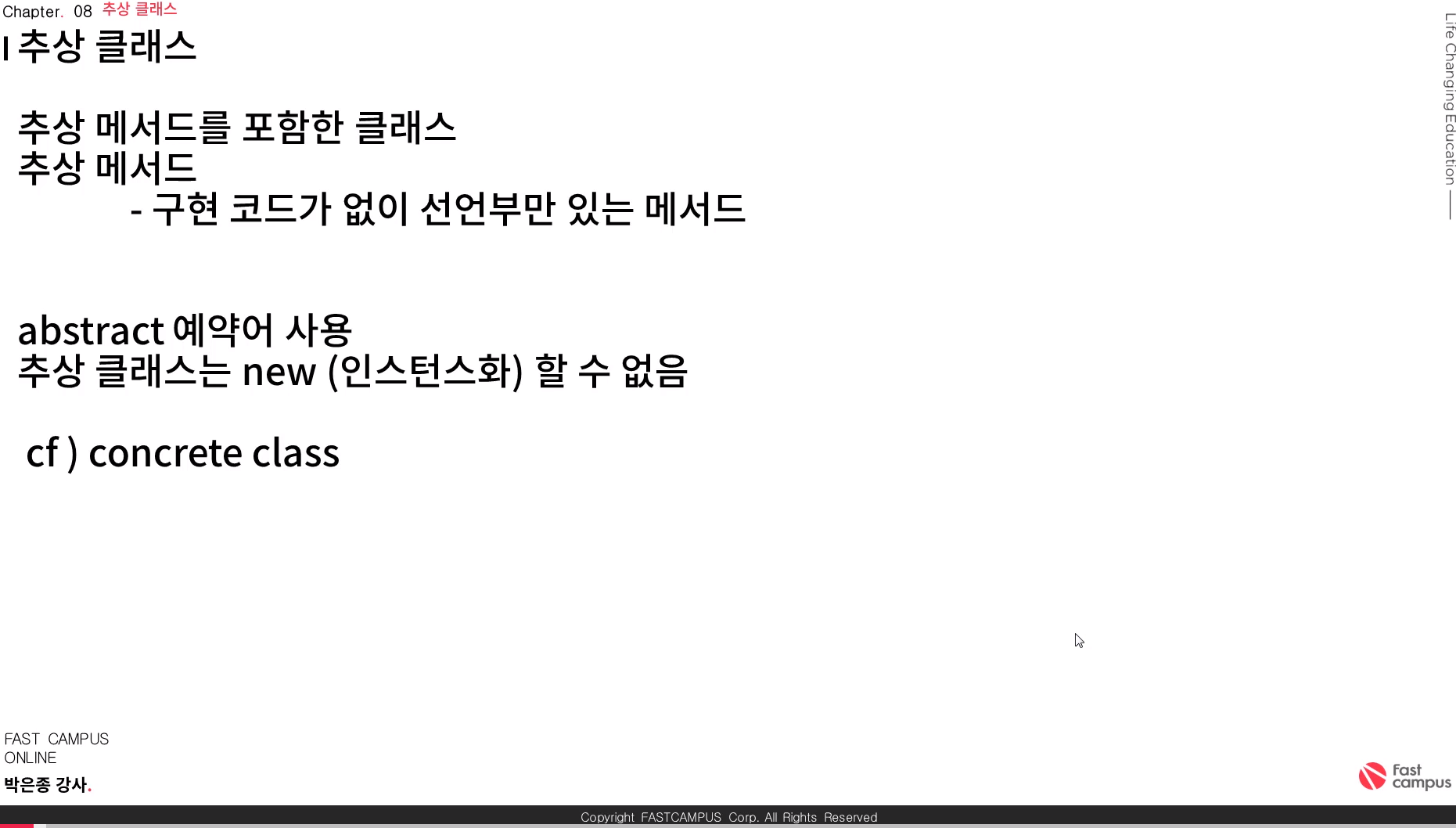 왜냐면, 추상클래스의 본질을 이해하는 순간! 문법적인 부분은 외우지 않아도 추상클래스 철학에 맞게 녹아져 있거든요....