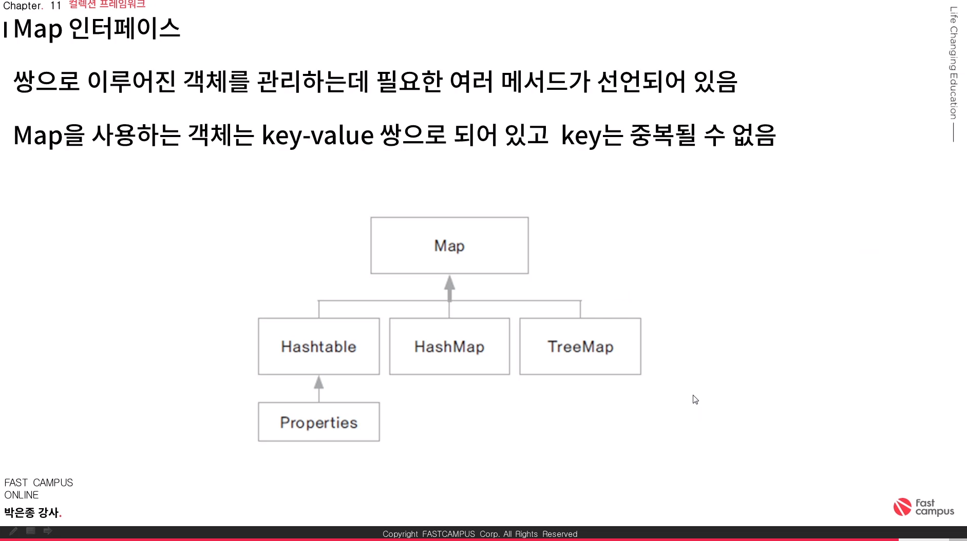 것입니다. 왜냐하면 Hashtable, HashMap은 가장 대표적인 Map이기 때문입니다.
