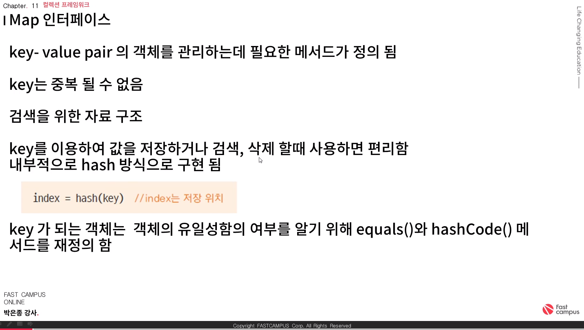 생각하면 됩니다. 만약 여러분이 Hashtable을 사용한 적이 있다면 Map을 사용하신