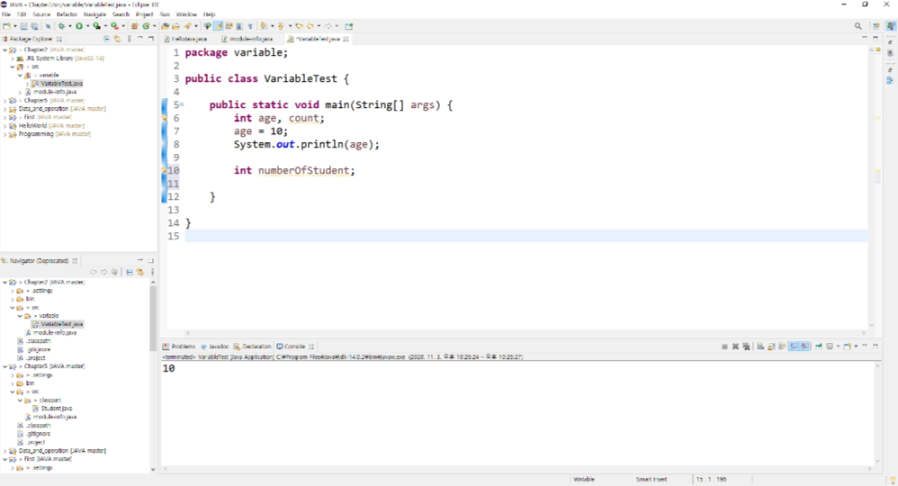 int age; 변수에 맞는 자료형과 변수명을 지정
